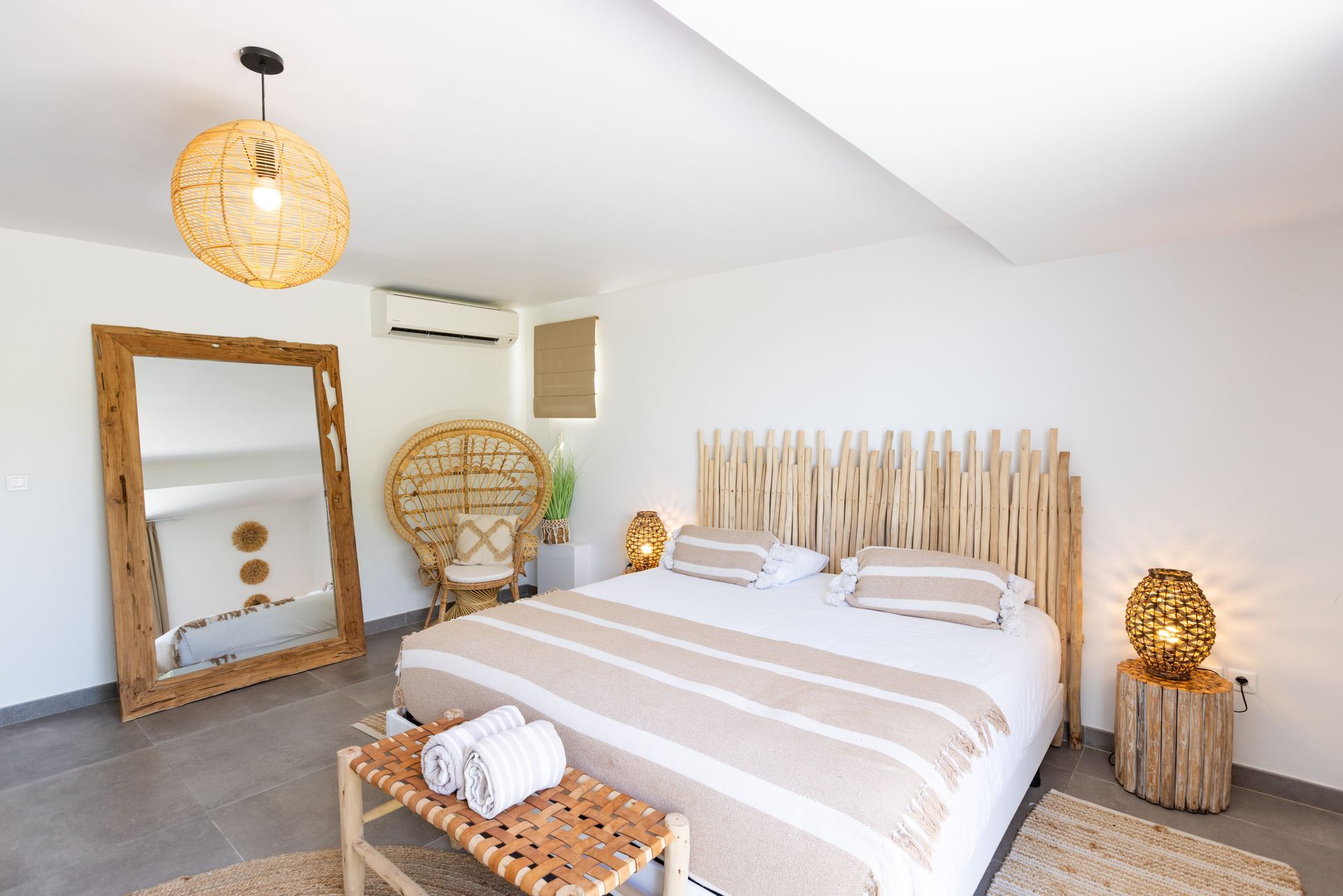 La villa dispose de 4 chambres spacieuses et élégamment conçues, chacune offrant sa propre salle de bain privée, son dressing et un accès direct à la terrasse avec une vue imprenable sur la mer.