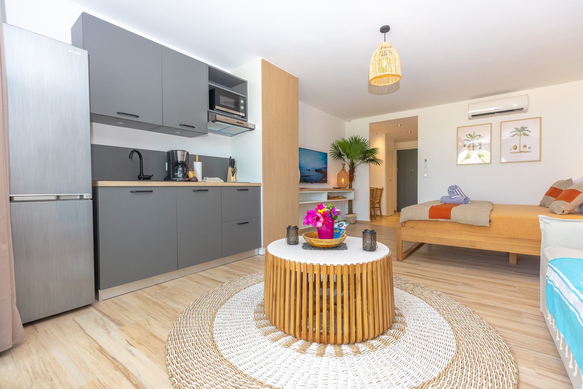 The Alamanda studio is nestled in the charming setting of our Friendly Island, inside a secure residence in Orient Bay.