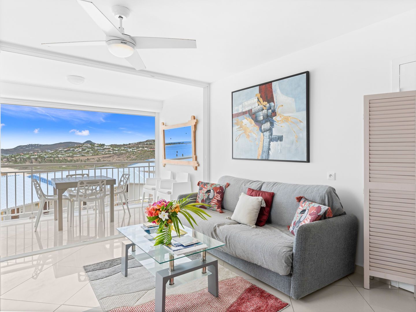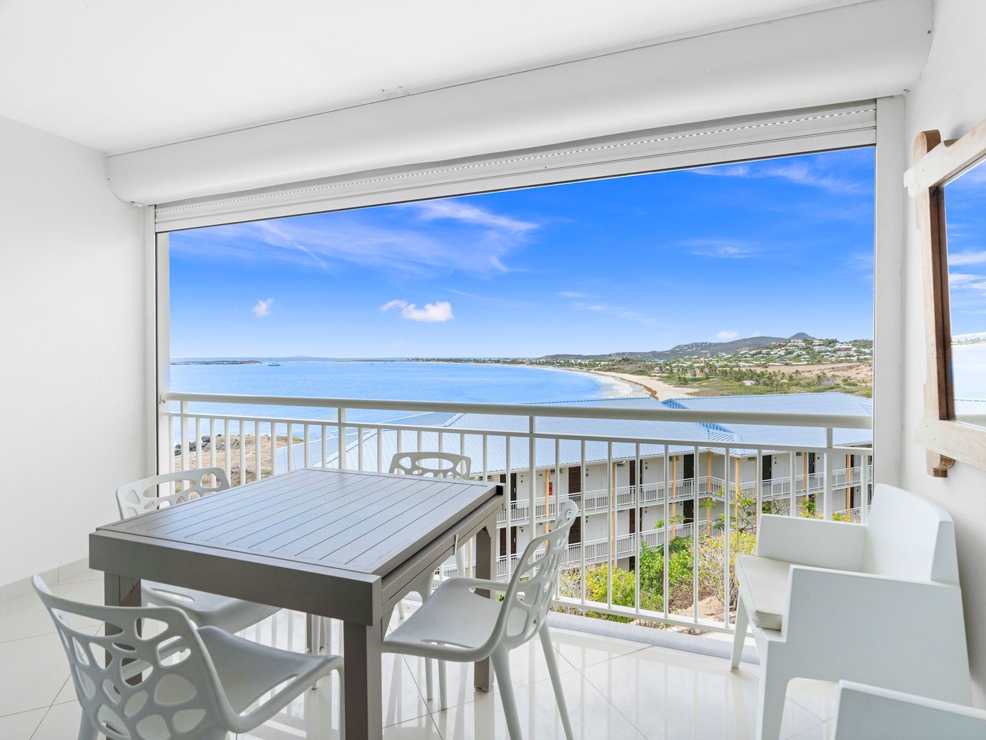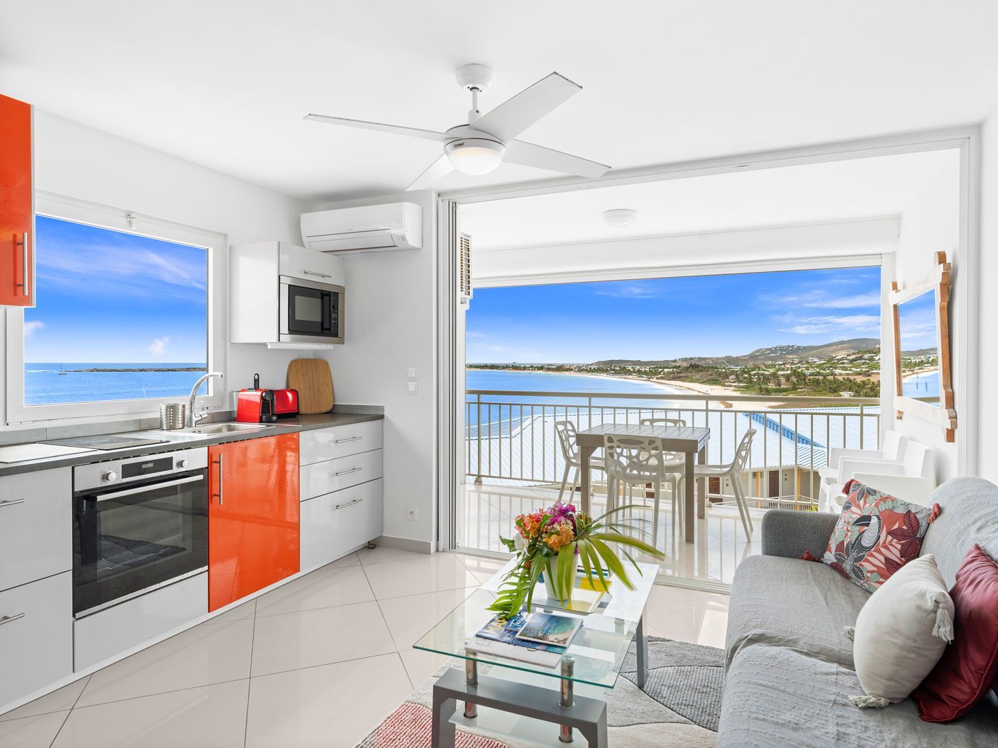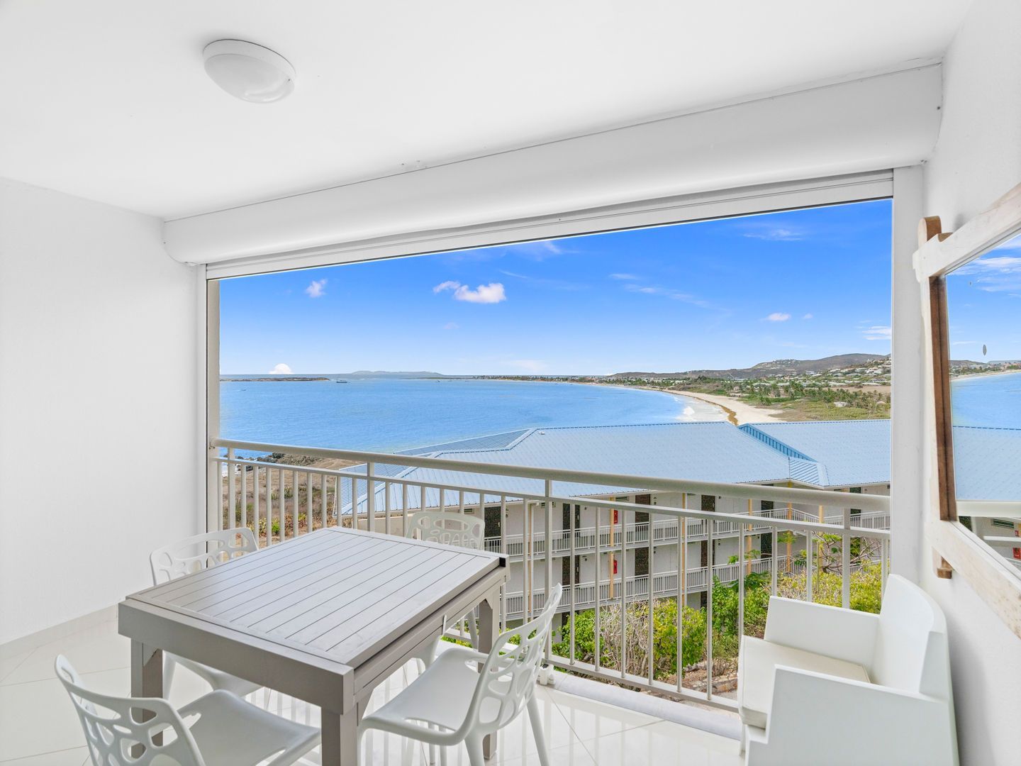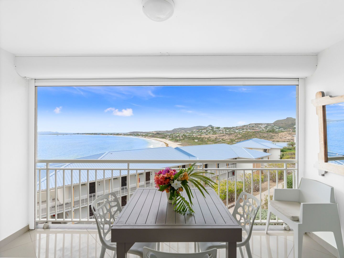Located right on the waterfront of Orient Bay, in the Mont Vernon residence, Studio Ti Bleu Azur offers stunning views of Saint-Martin, Orient Beach, Green Cay, and even St. Barts in the distance.