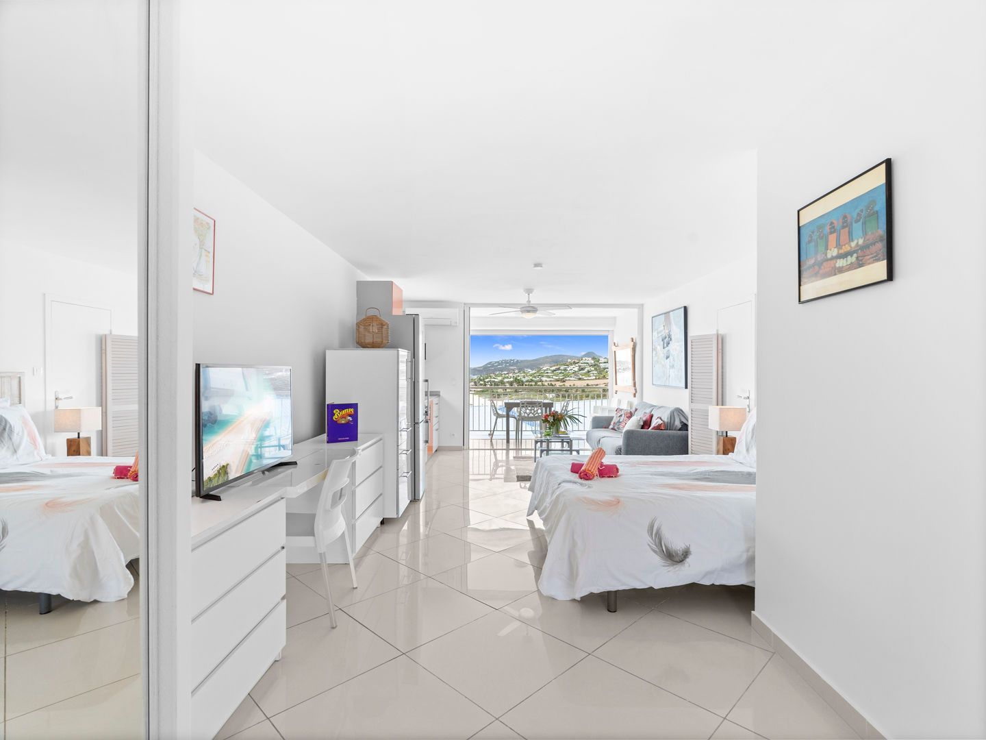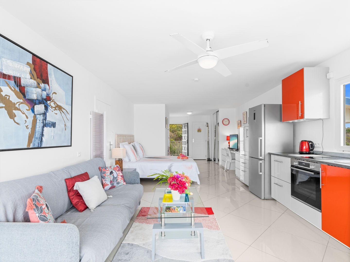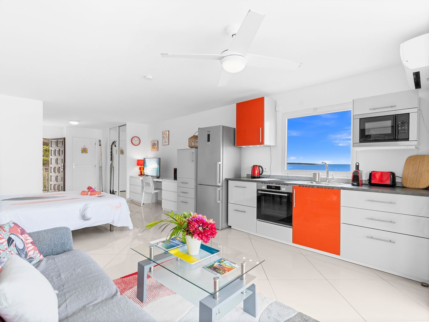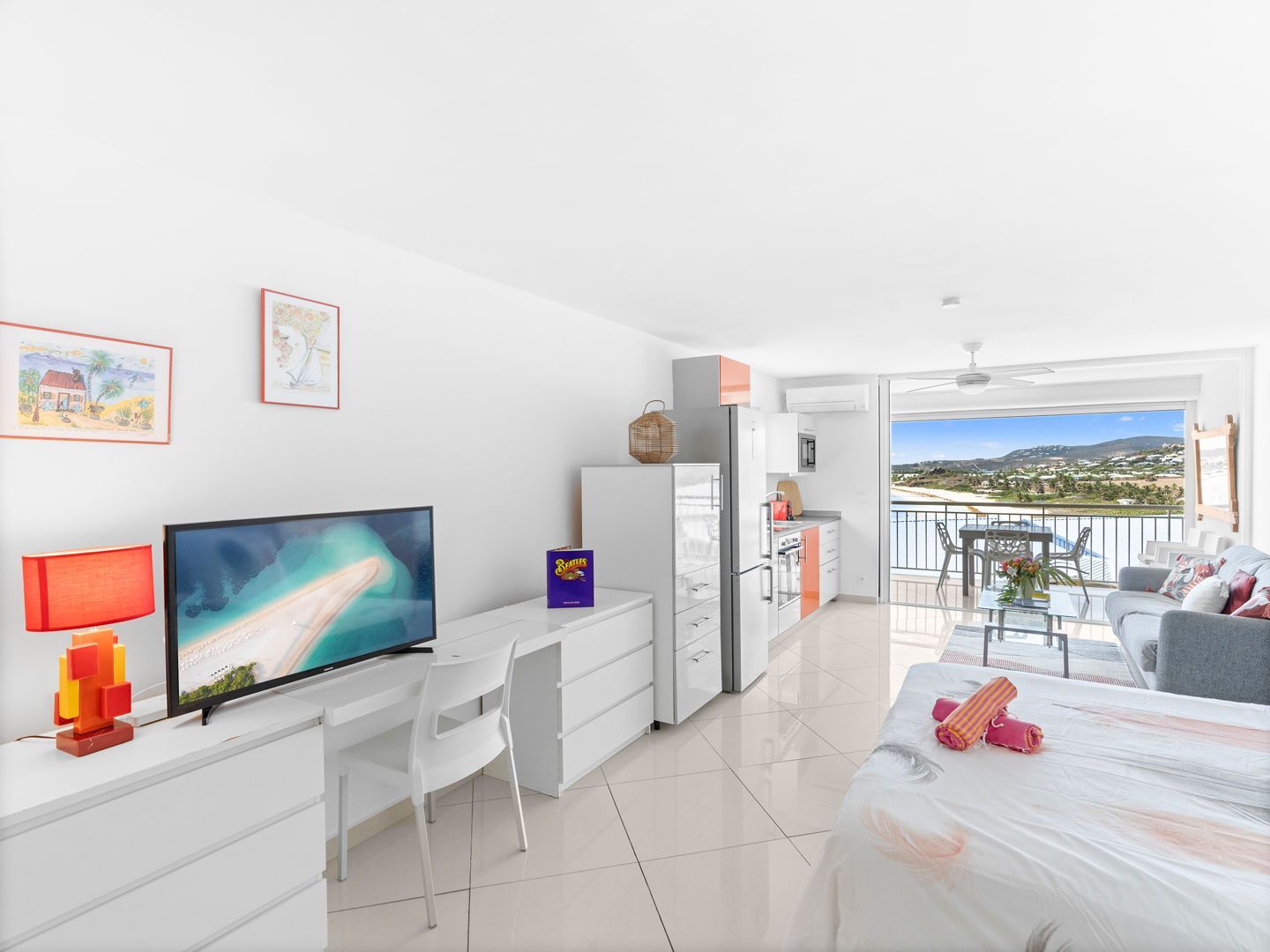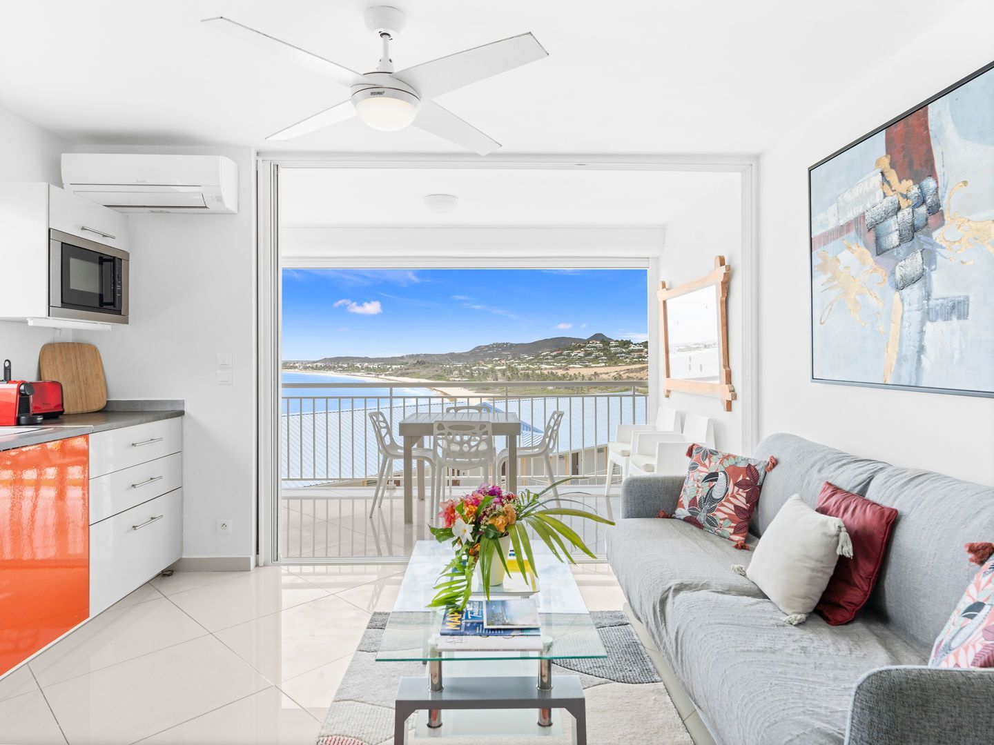 Located right on the waterfront of Orient Bay, in the Mont Vernon residence, Studio Ti Bleu Azur offers stunning views of Saint-Martin, Orient Beach, Green Cay, and even St. Barts in the distance.