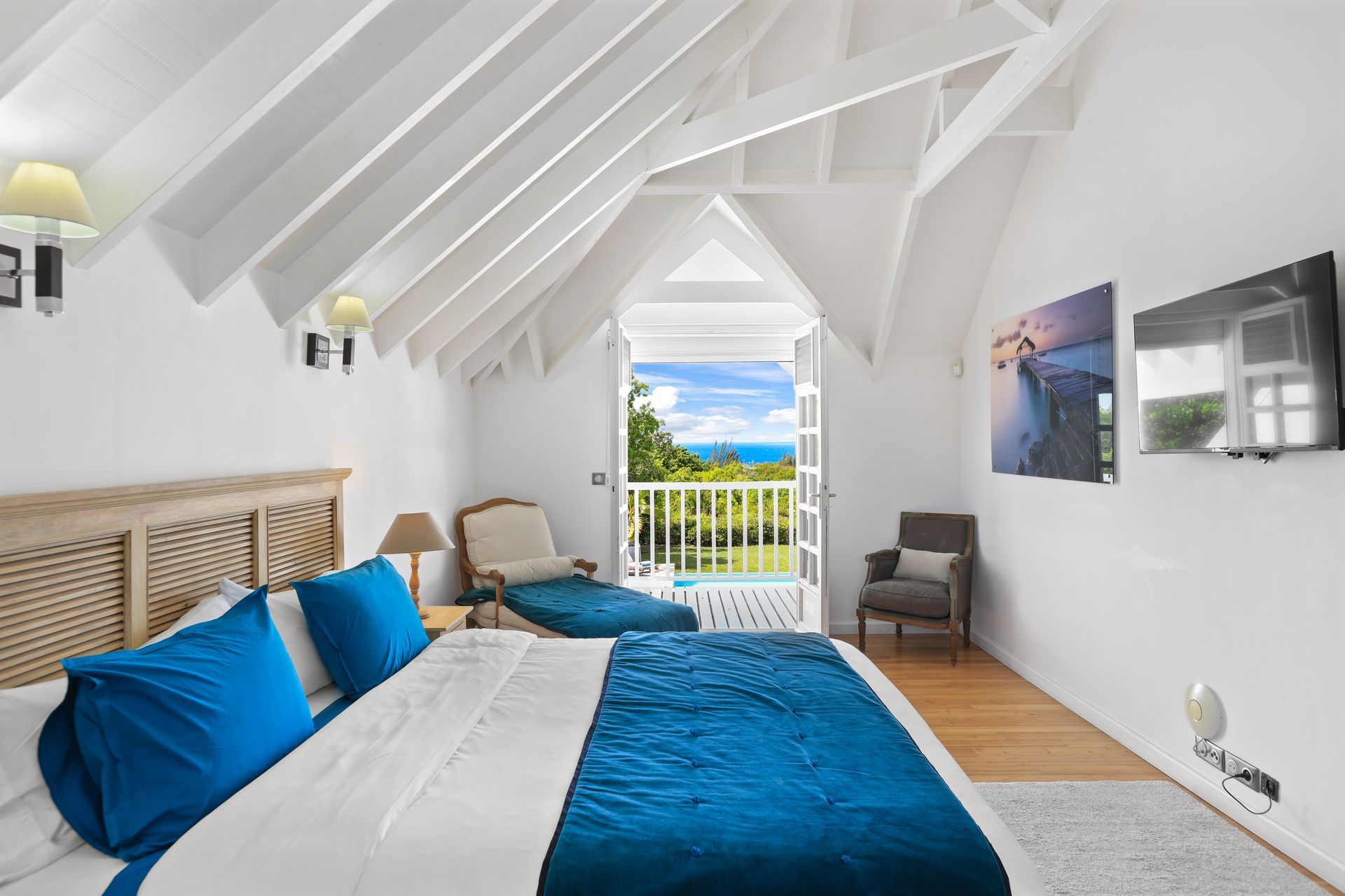 The two upstairs bedrooms boast stunning views of the Caribbean Sea.