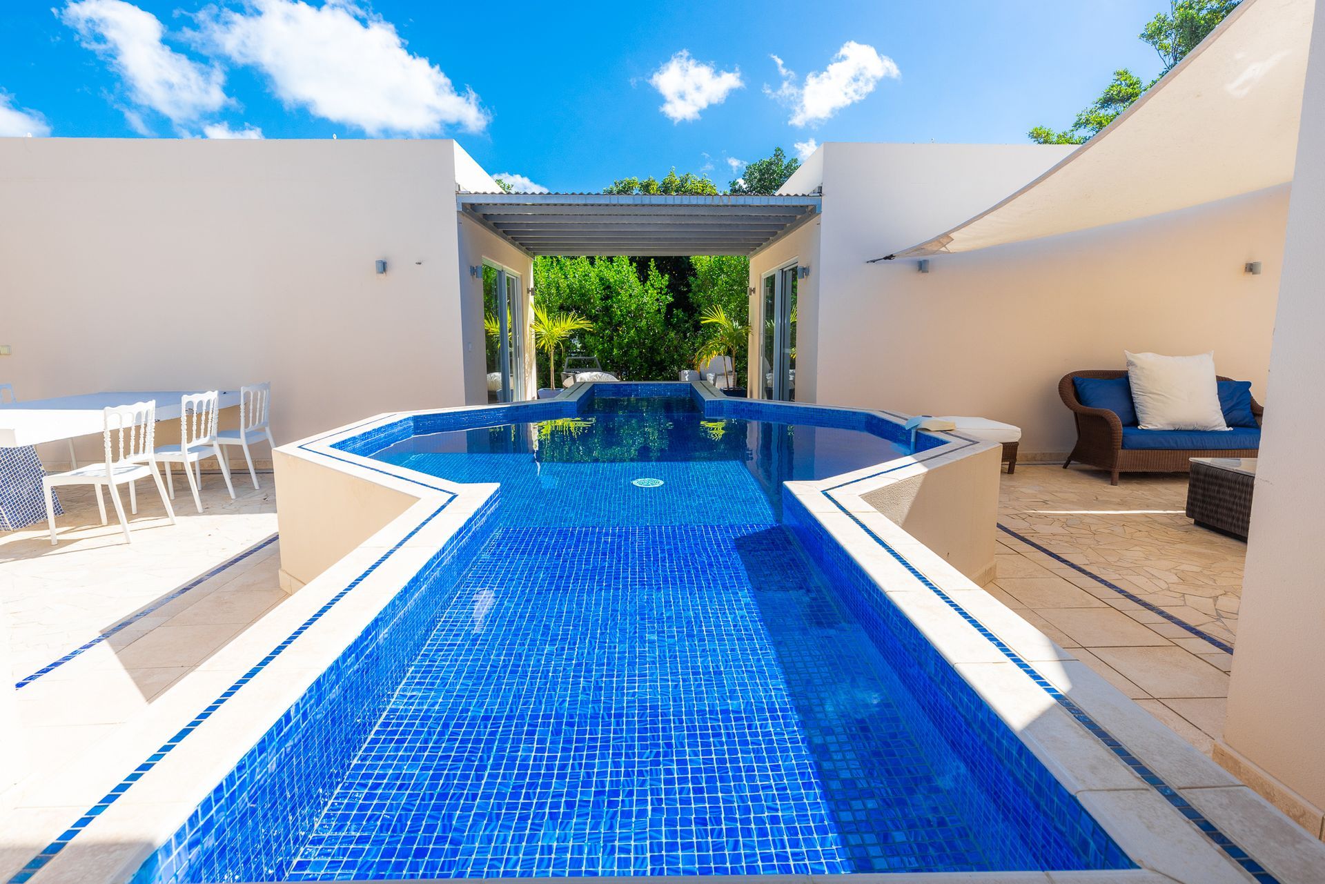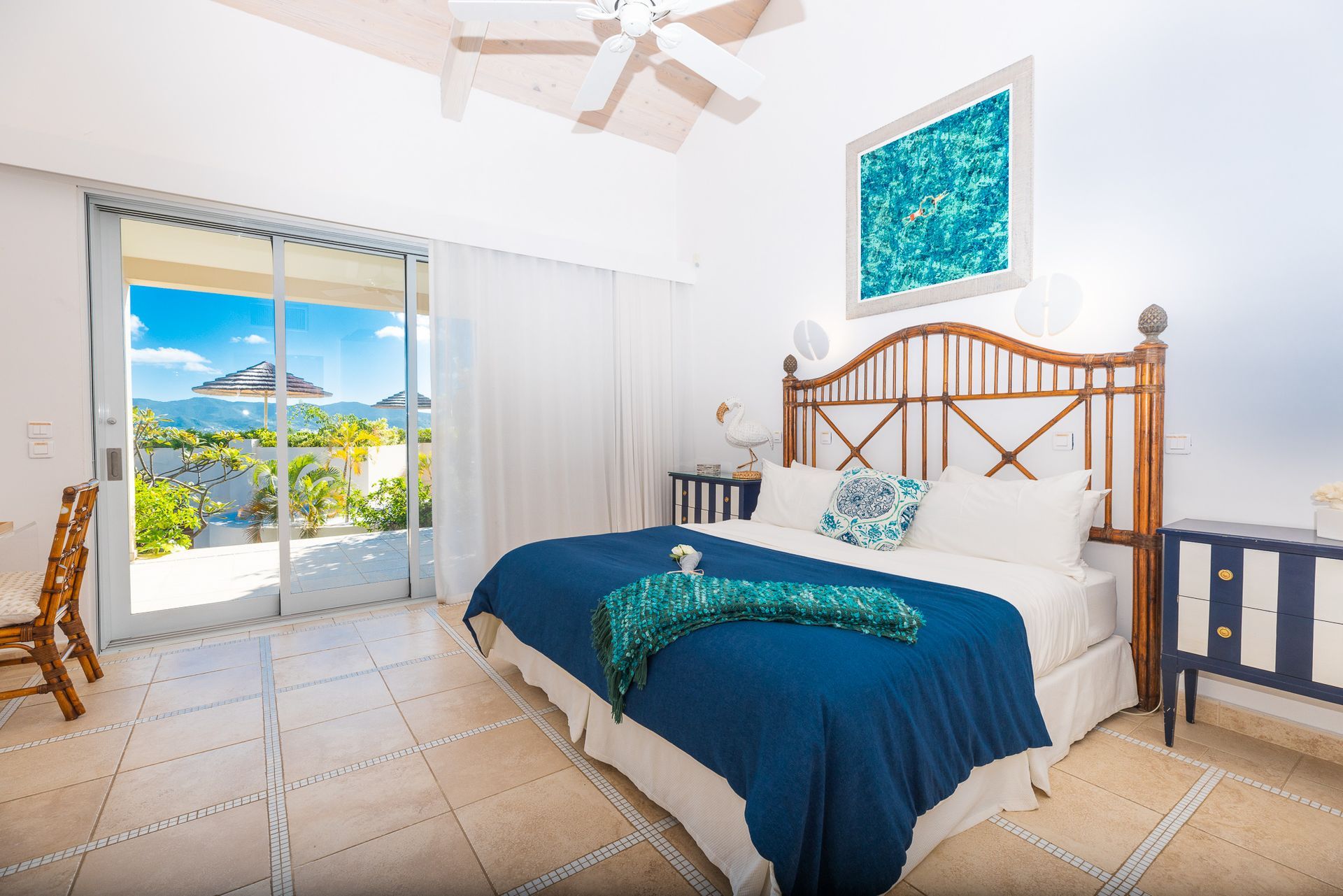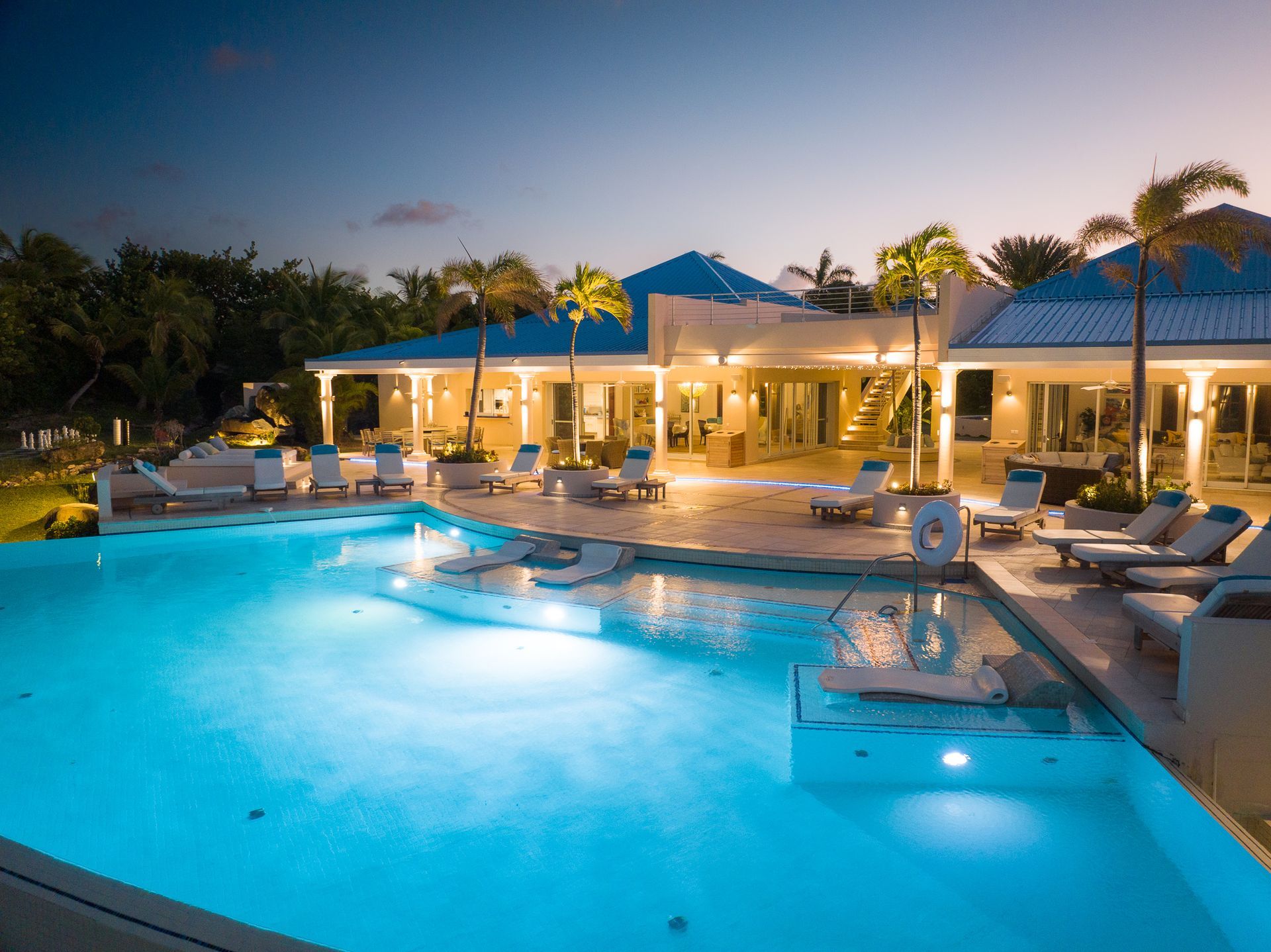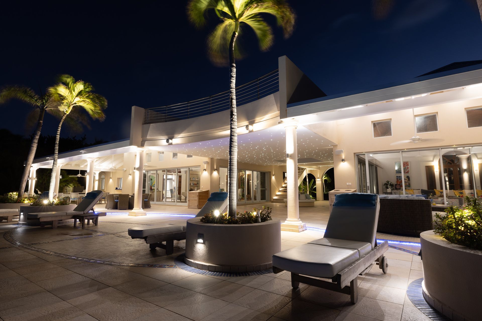 Set within a lush 20,000 m² tropical garden, the property offers an exceptional vacation experience featuring two swimming pools, a jacuzzi with panoramic views of the Caribbean Sea and Anguilla, a volleyball court, and a rooftop terrace.