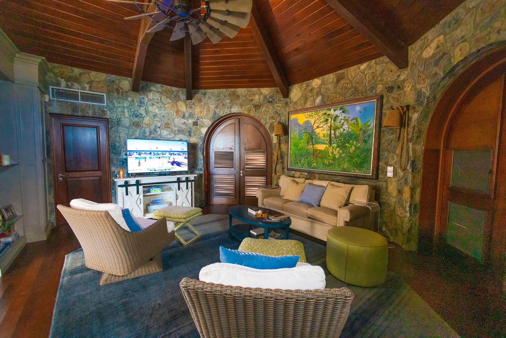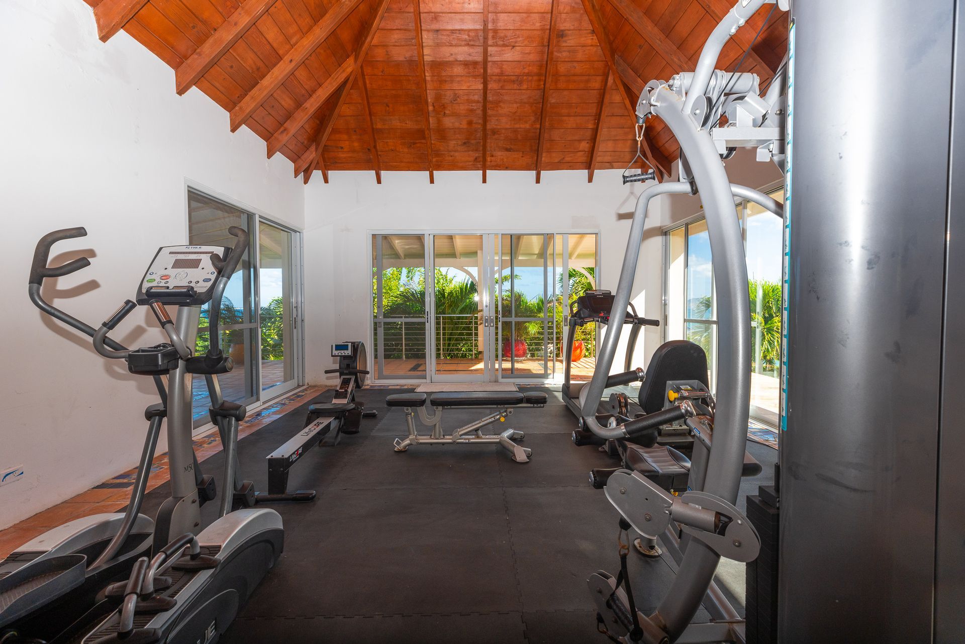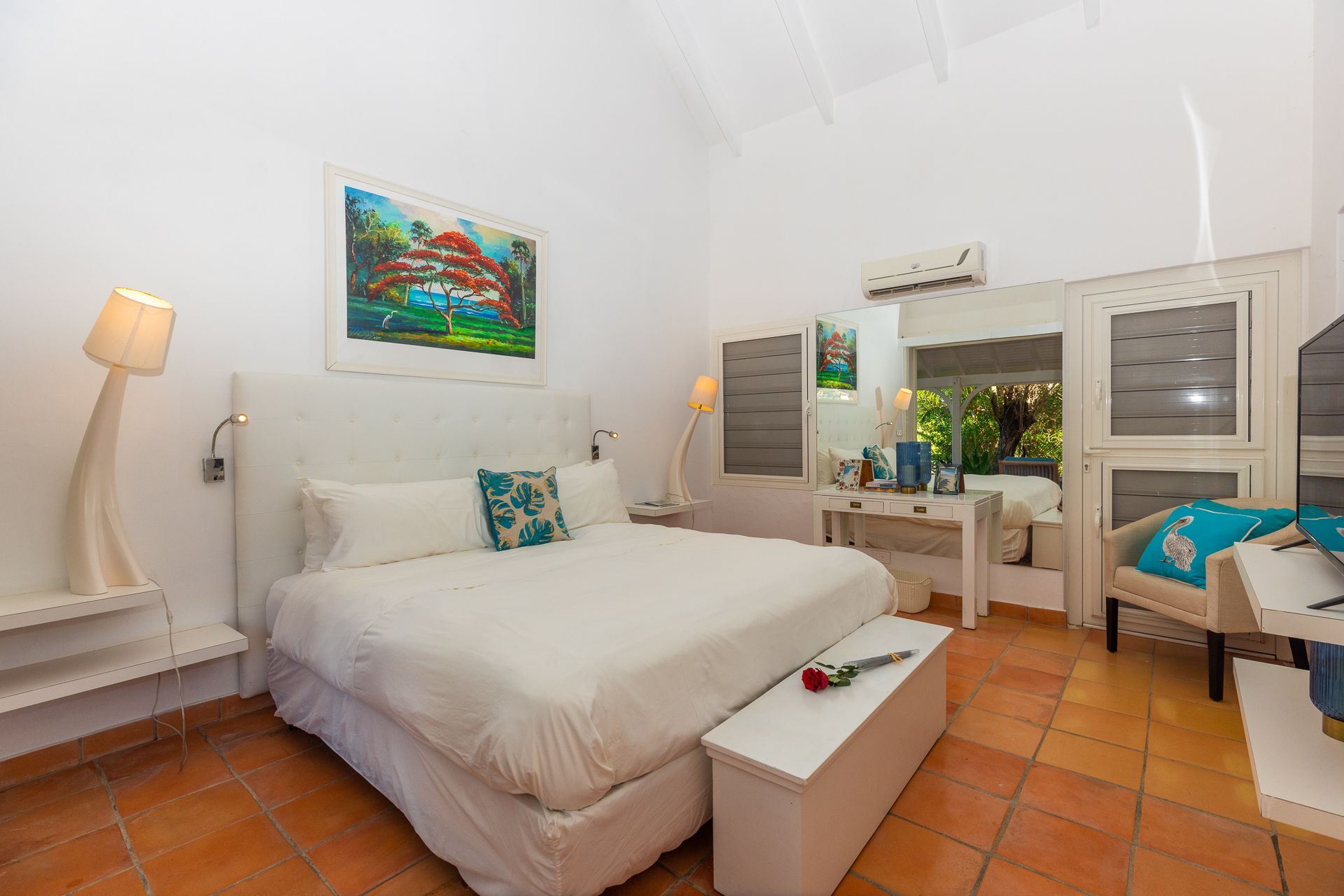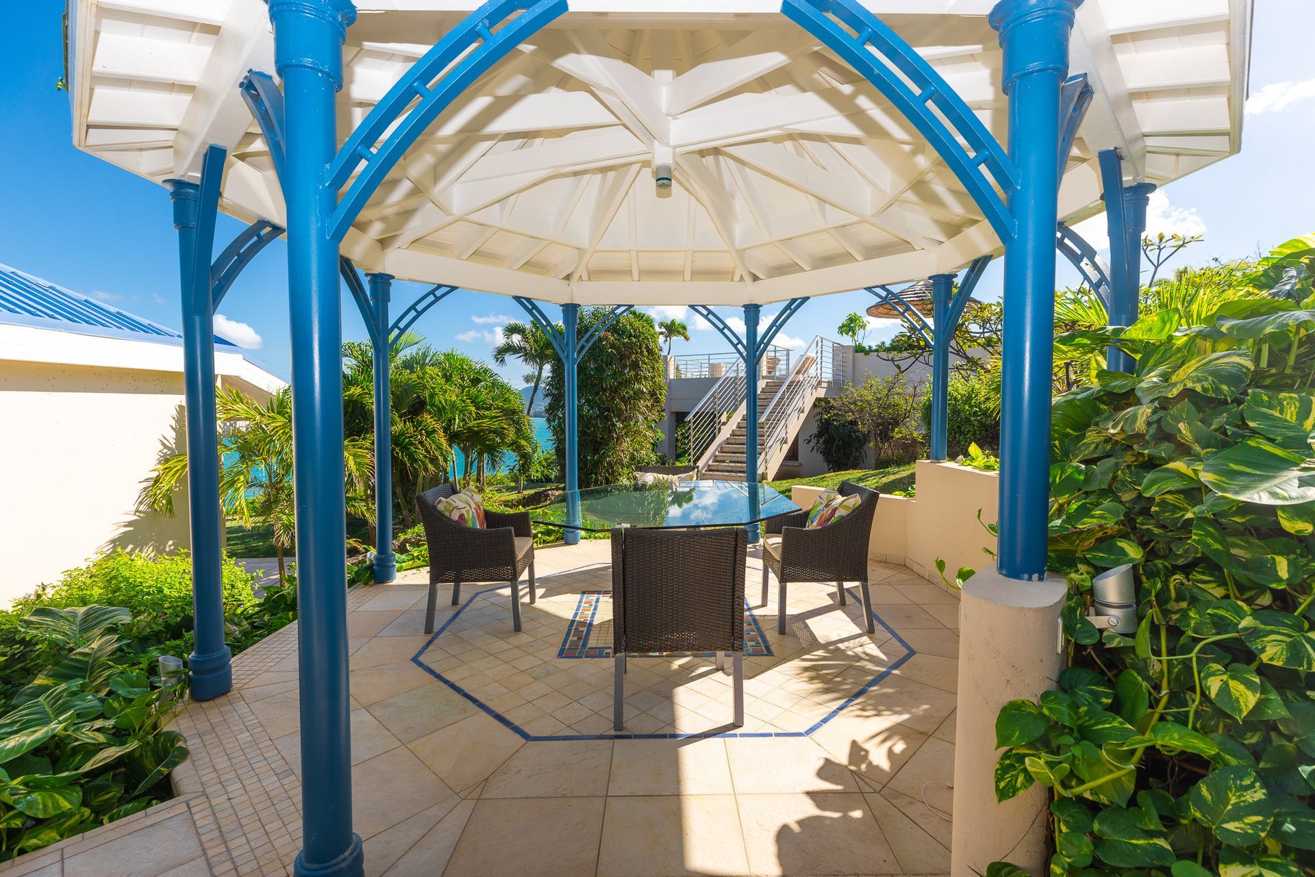 Set within a lush 20,000 m² tropical garden, the property offers an exceptional vacation experience featuring two swimming pools, a jacuzzi with panoramic views of the Caribbean Sea and Anguilla, a volleyball court, and a rooftop terrace.