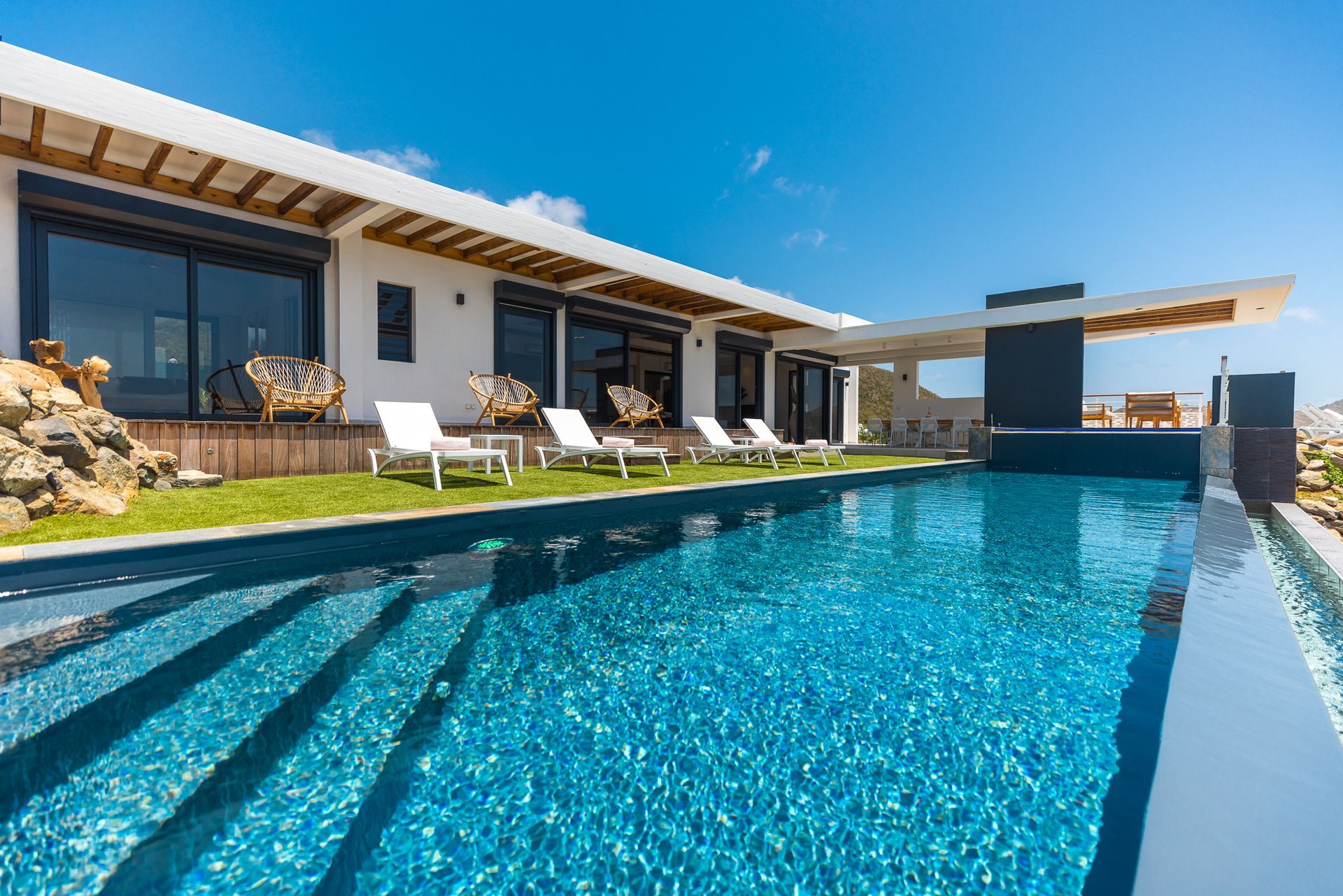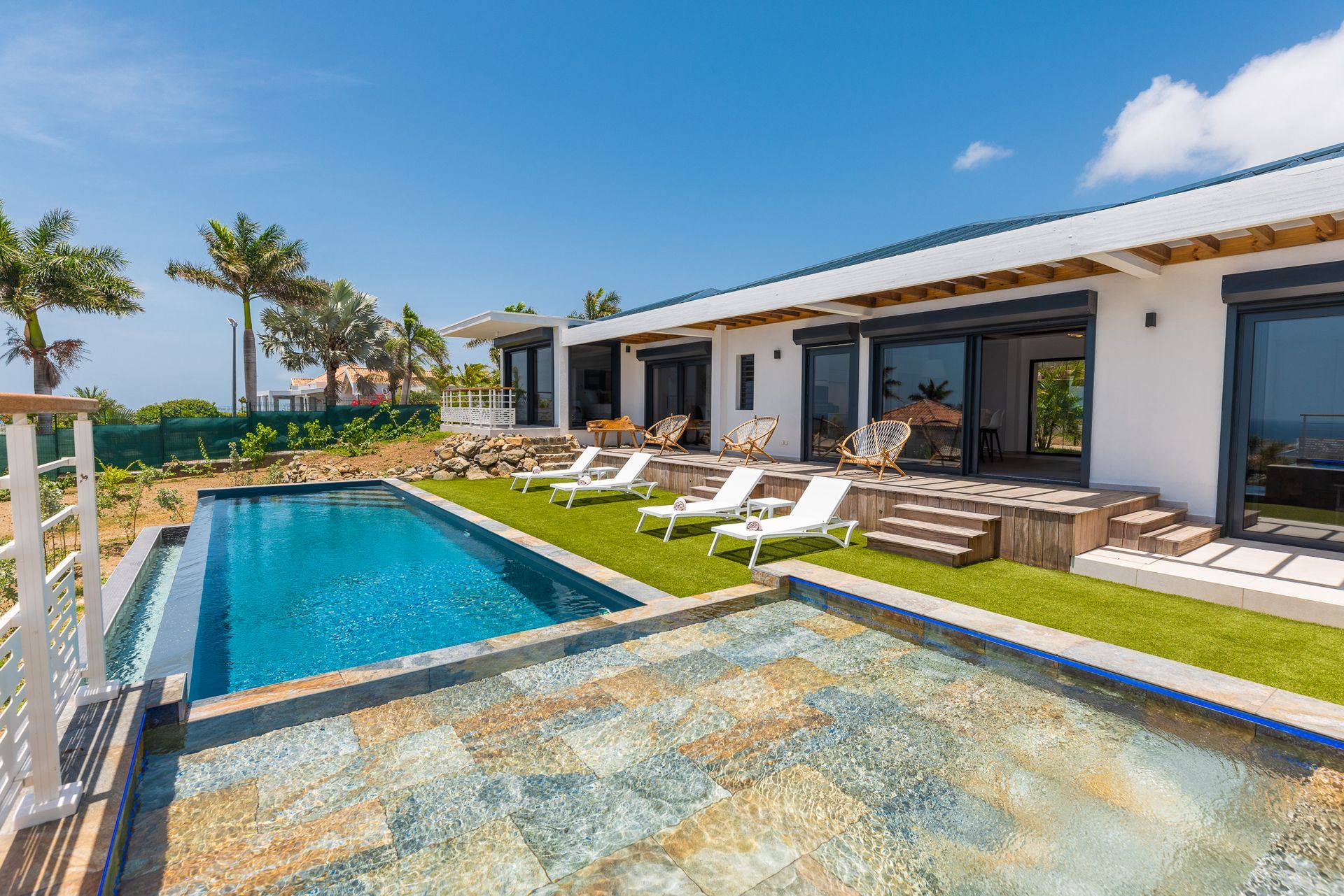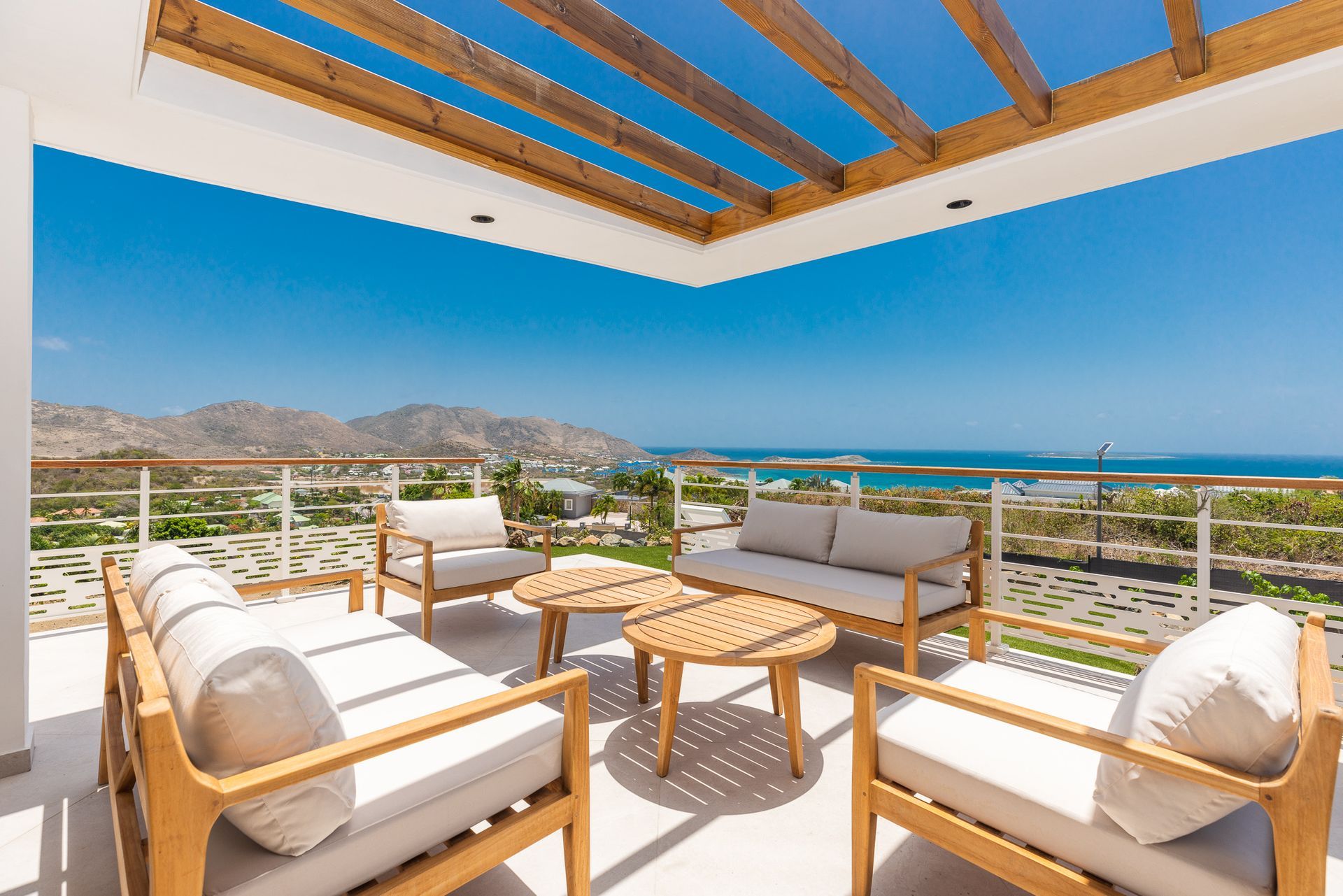 a modern retreat overlooking Orient Bay, blending elegance, comfort, and breathtaking Caribbean views.