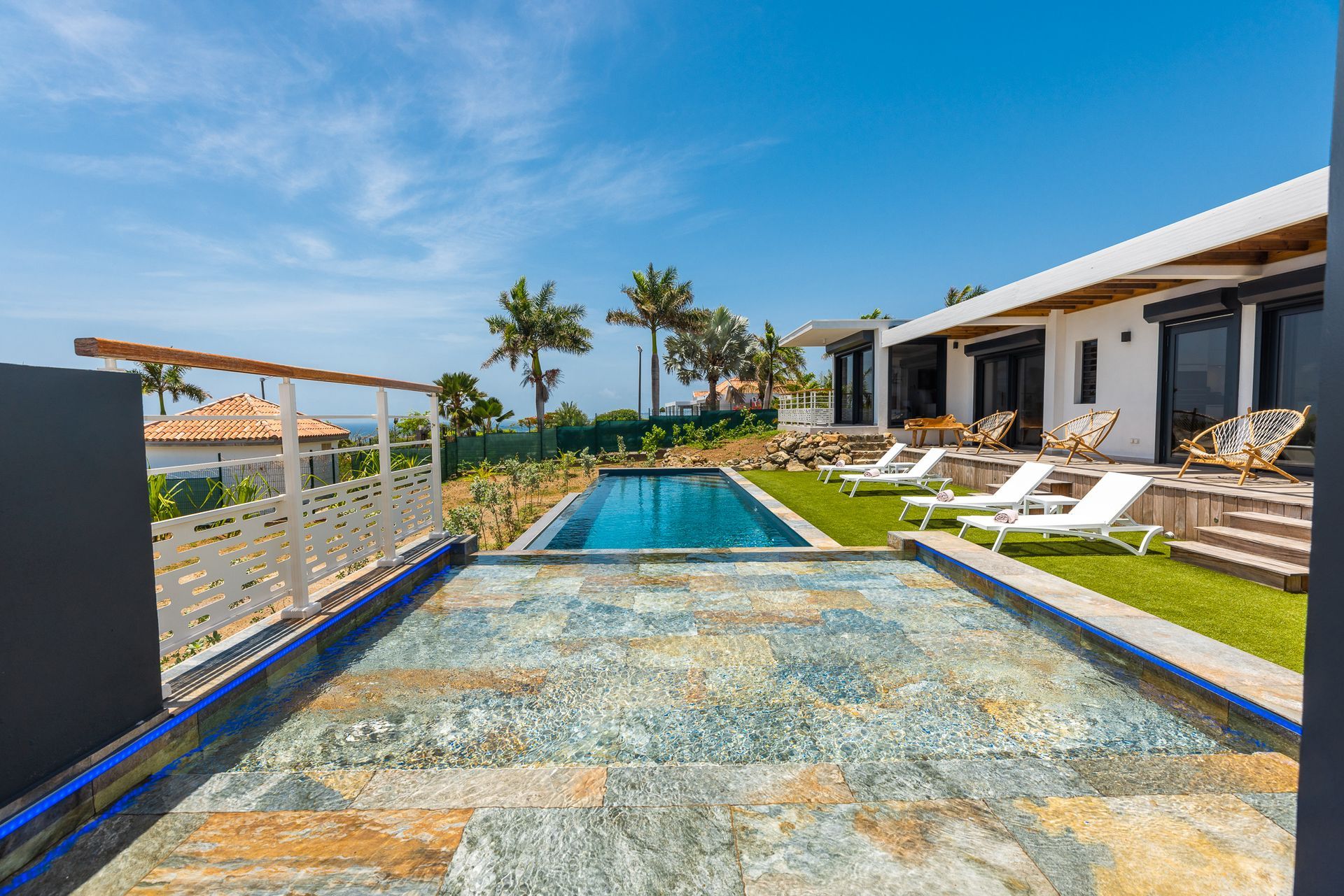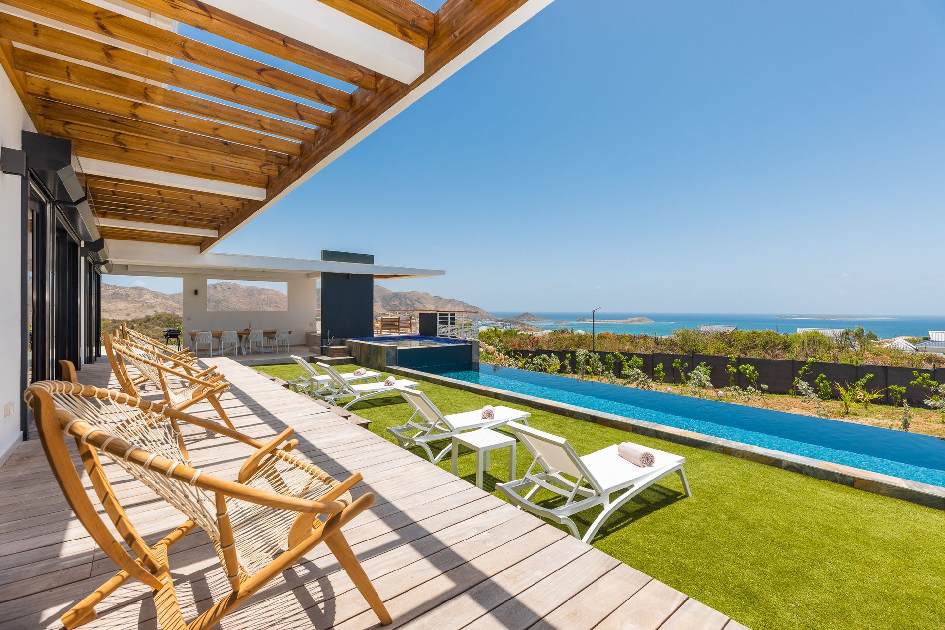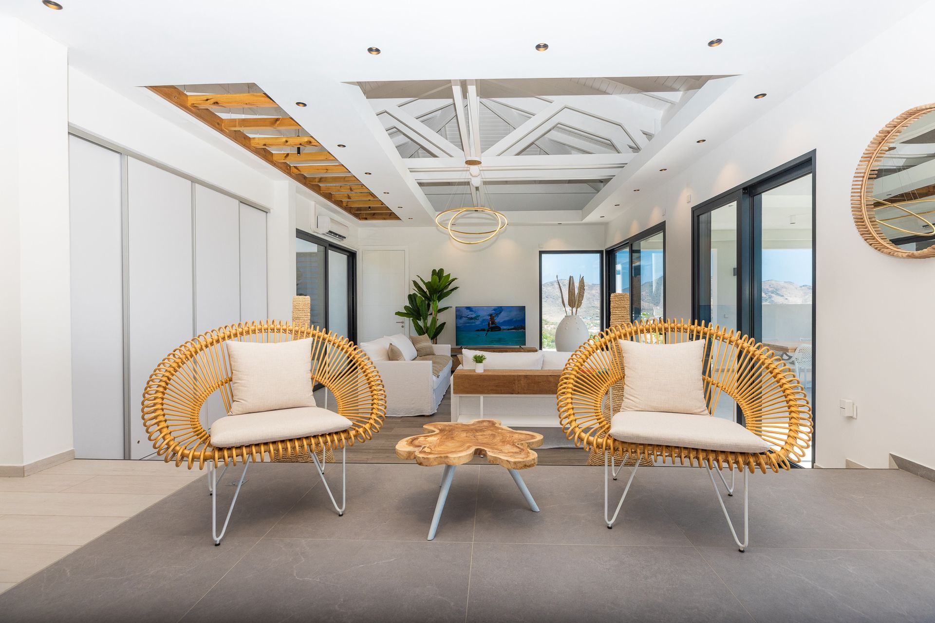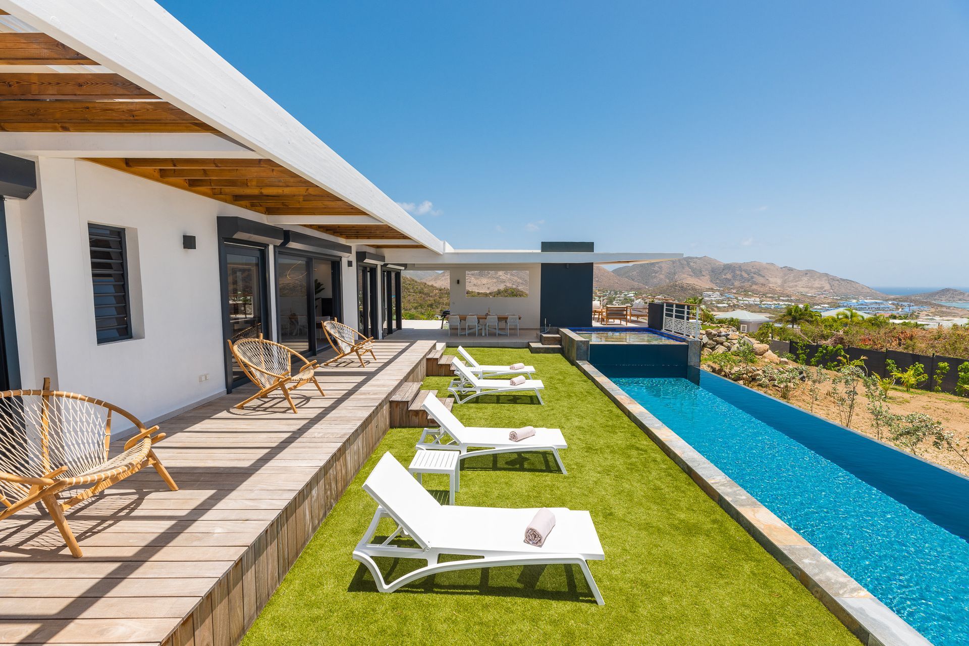 a modern retreat overlooking Orient Bay, blending elegance, comfort, and breathtaking Caribbean views.